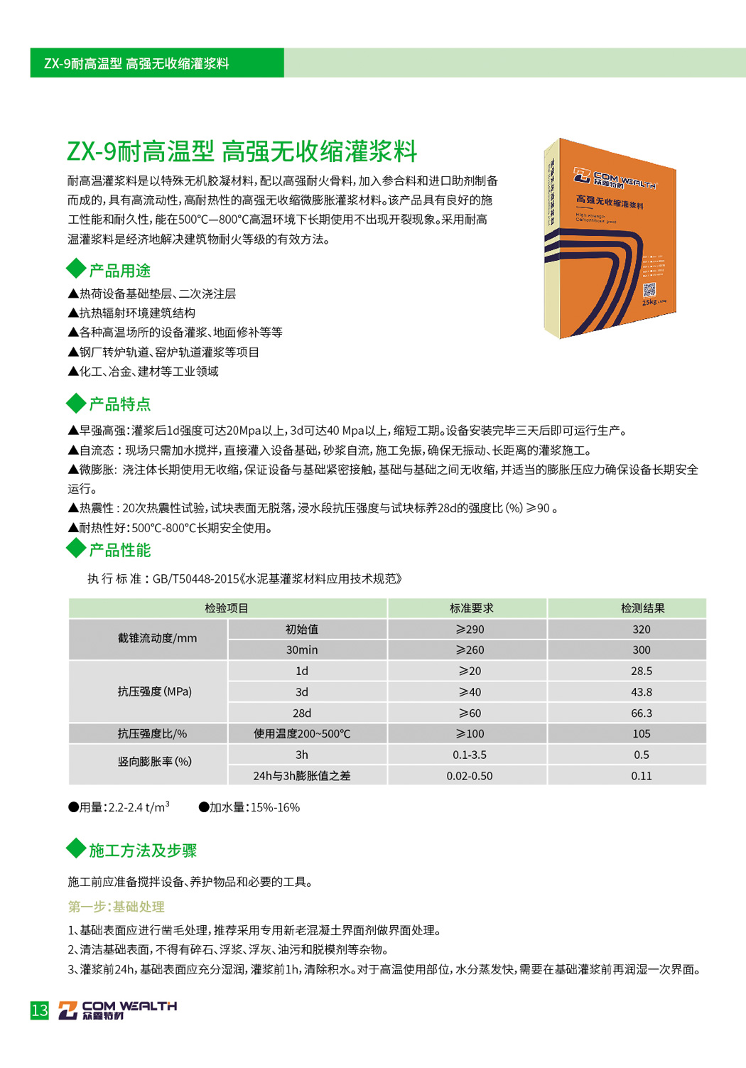 ZX-9耐高溫型-高強無收縮灌漿料