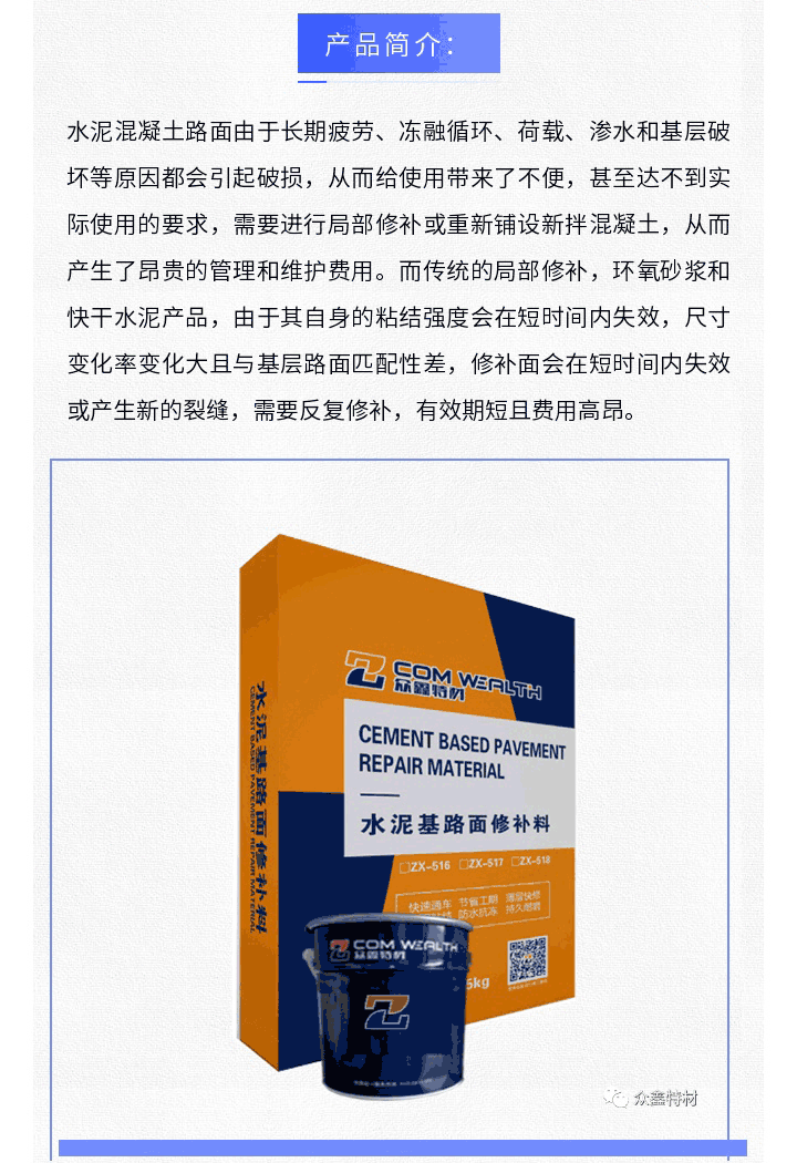 ZX-518[雙組份]水泥基路面修補料