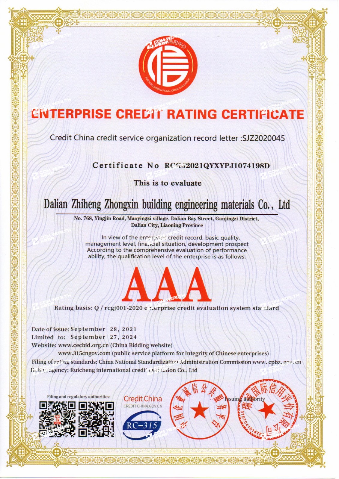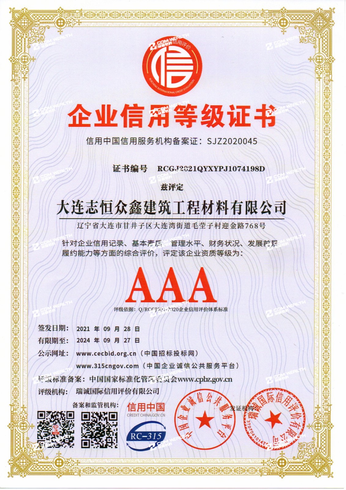 企業信用等級證書