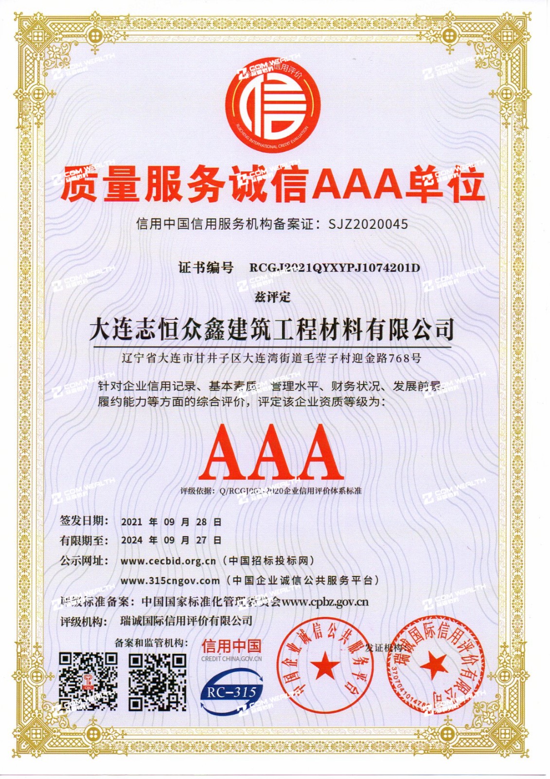 質量服務誠信AAA單位
