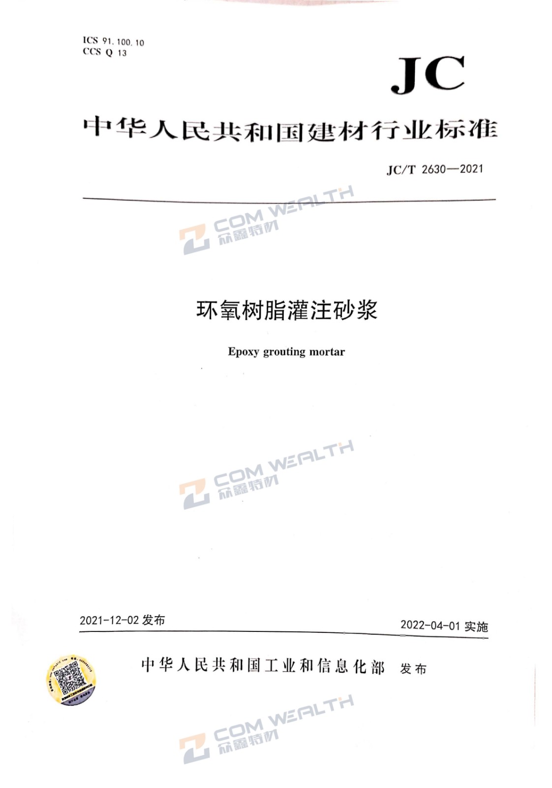 參編JC/T 2630-2021 《 環氧樹脂灌注砂漿》建材行業標準