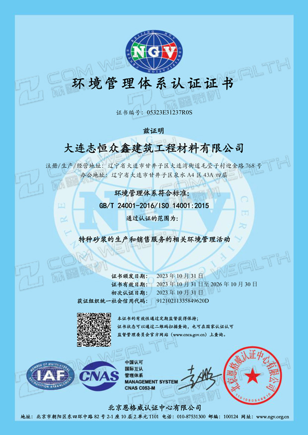 環境管理體系認證證書