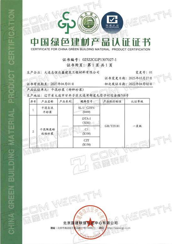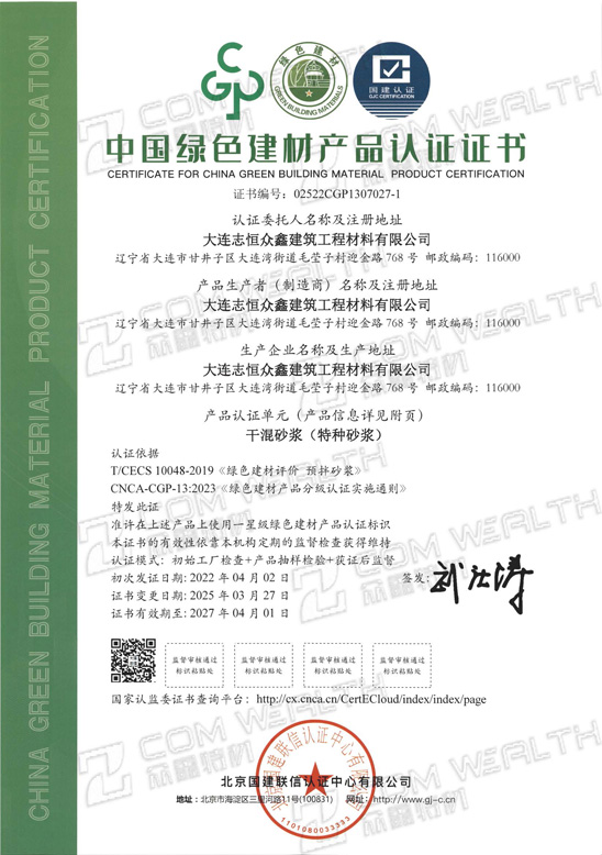 中國綠色建材產品認證證書